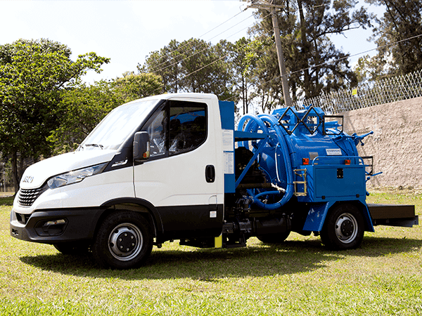 Equipamento Combinado de hidrojateamento sob alta pressão e sucção a alto vácuo modelo ELPV-40, marca SIBRAVAC, para desobstrução e limpeza de ramais e redes de esgoto sanitário e poços de visita, instalado sobre chassi de caminhão fornecido pelo Cliente, de modo a torná-lo transportável.