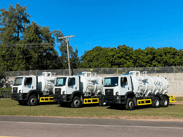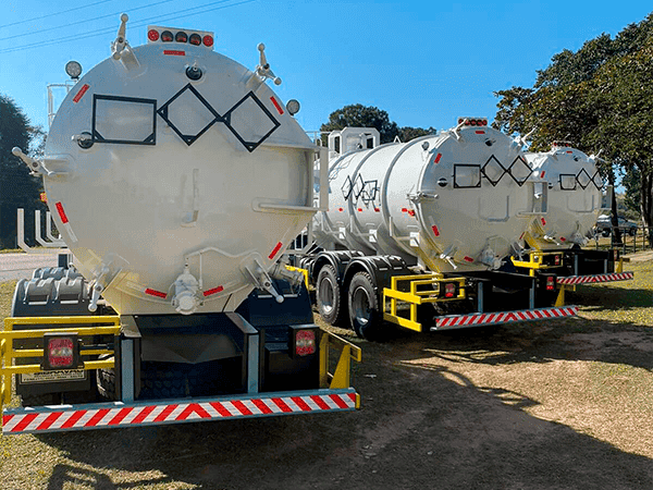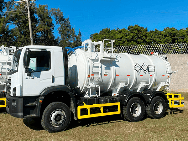 Equipamento de limpeza por sucção a alto vácuo modelo ELV-30, marca SIBRAVAC, equipado com tanque reservatório e bomba de vácuo de anel líquido, instalado sobre chassi de caminhão fornecido pelo Cliente, de modo a torná-lo transportável.